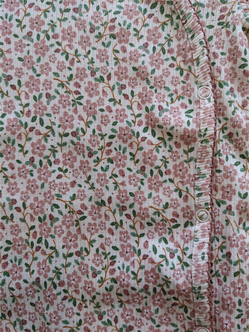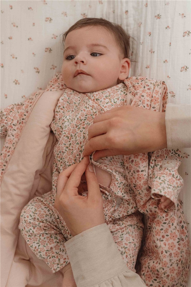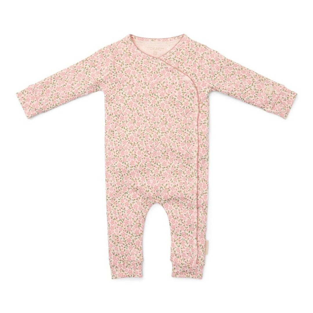 Precioso pijama entero con un estampado de flores. Cierre total con botones de presión. De algodón 100% orgánico.