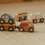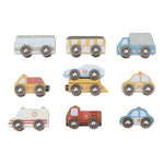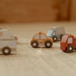 ¡La ciudad siempre está en movimiento! Estos vehículos comerciales y de emergencia de madera están listos para la acción y se desplazan con suavidad sobre los rieles para brindar ayuda donde sea necesario. Envía a los bomberos, haz que la policía patrulle o deja que el camión reparta mercancías. Diseñado para una diversión sin límites y es compatible con el set de tren. ¡Combínalos y crea tu propia ciudad aventurera!