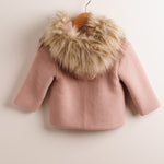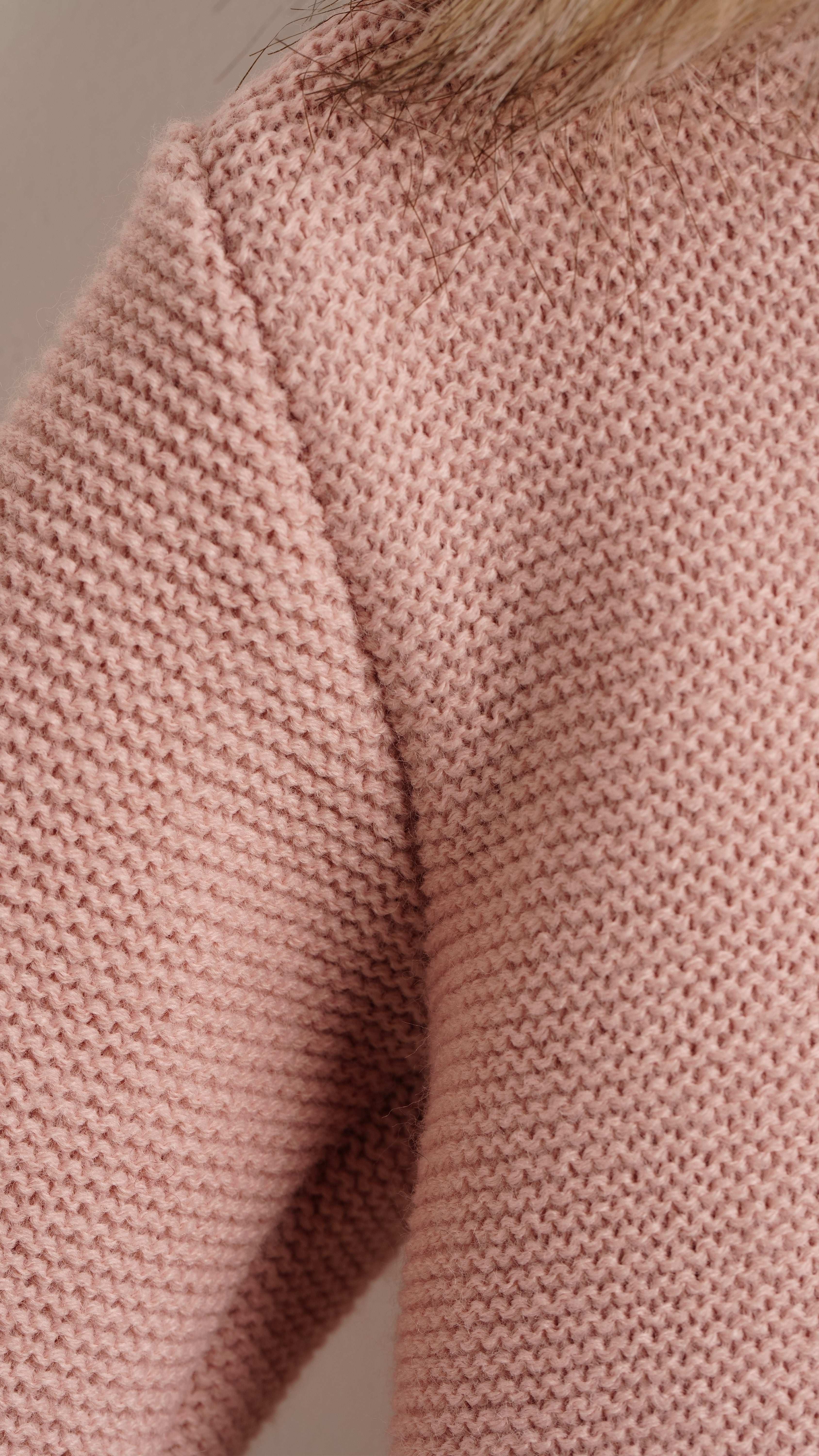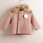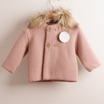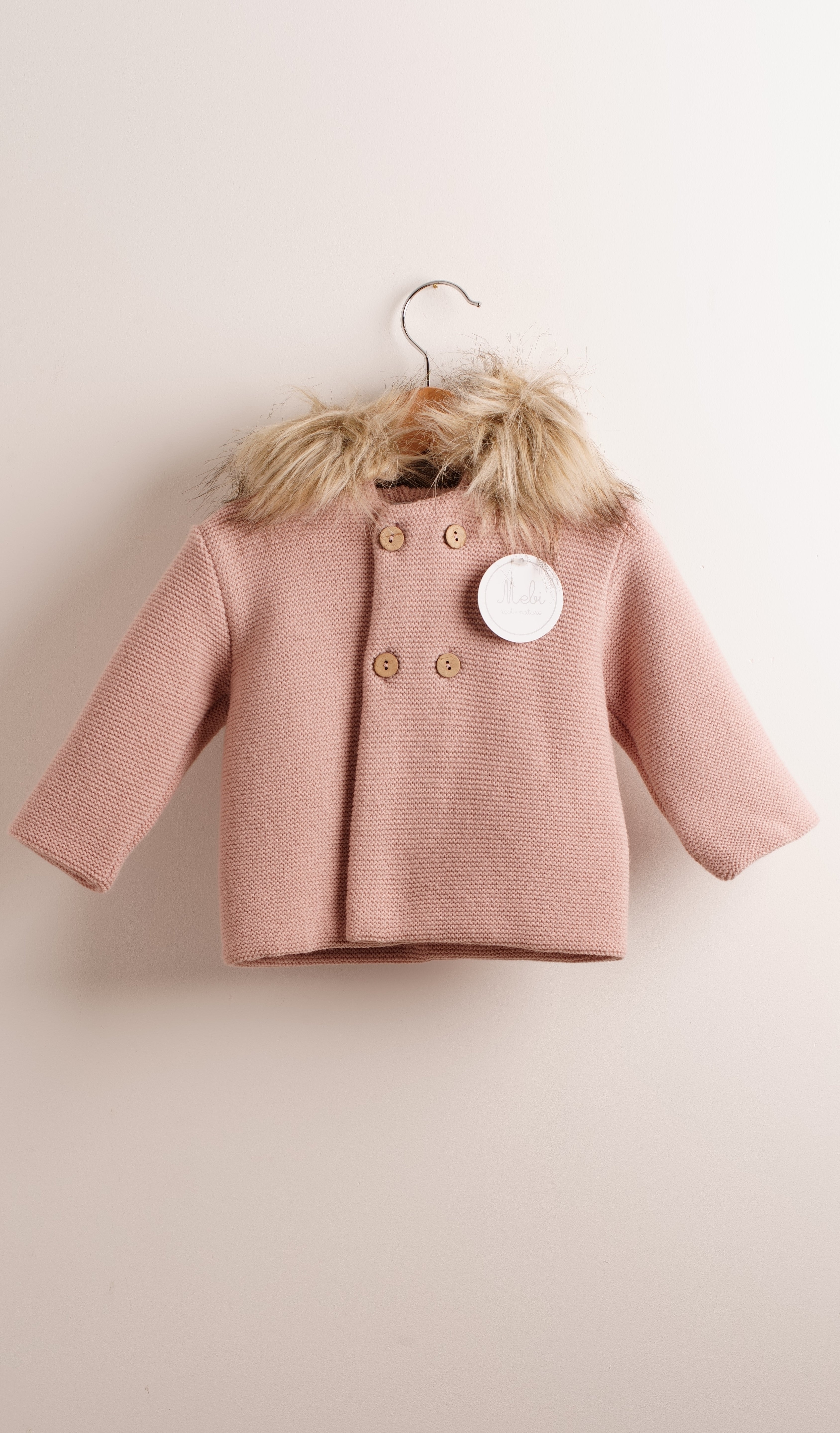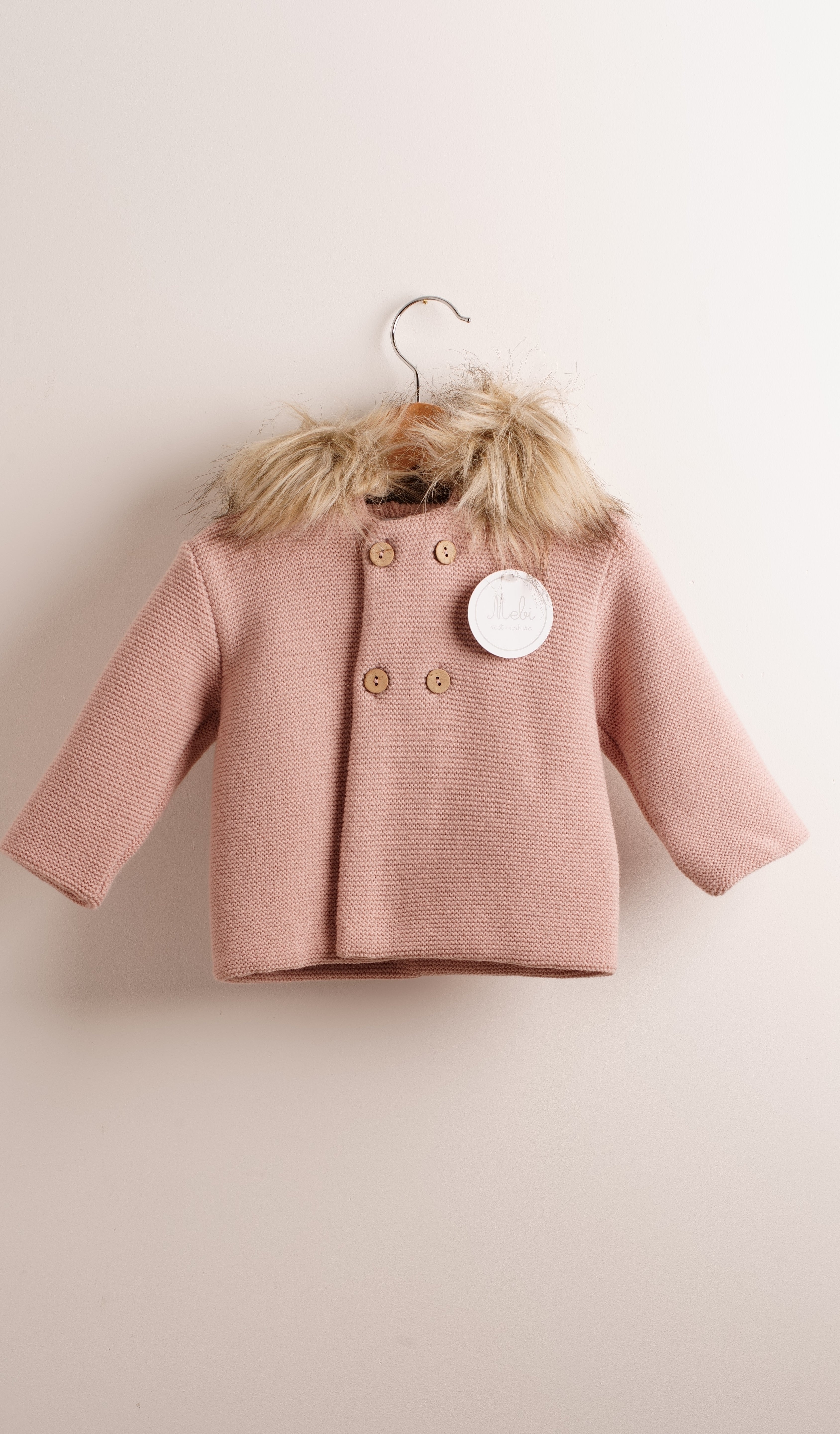 Capucha de doble punto color nude con pelo artificial. El pelo se quita para poder lavar la prenda. Combínalo con nuestros gorros a juego.