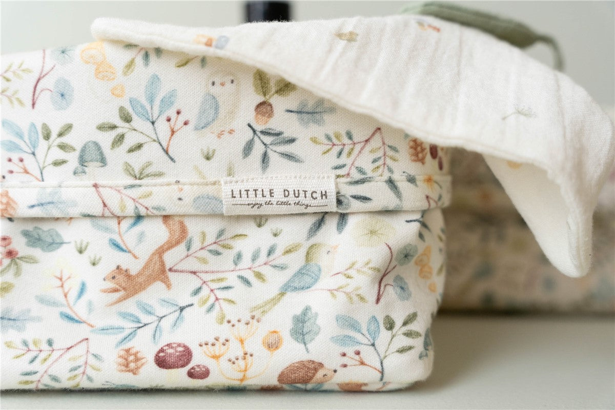 La cesta organizadora, con un encantador estampado floral en tonos pastel, es perfecta para mantener ordenados pañales, cremitas y accesorios de cuidado. Además de práctica, aporta un toque decorativo cálido y dulce a la habitación del bebé.