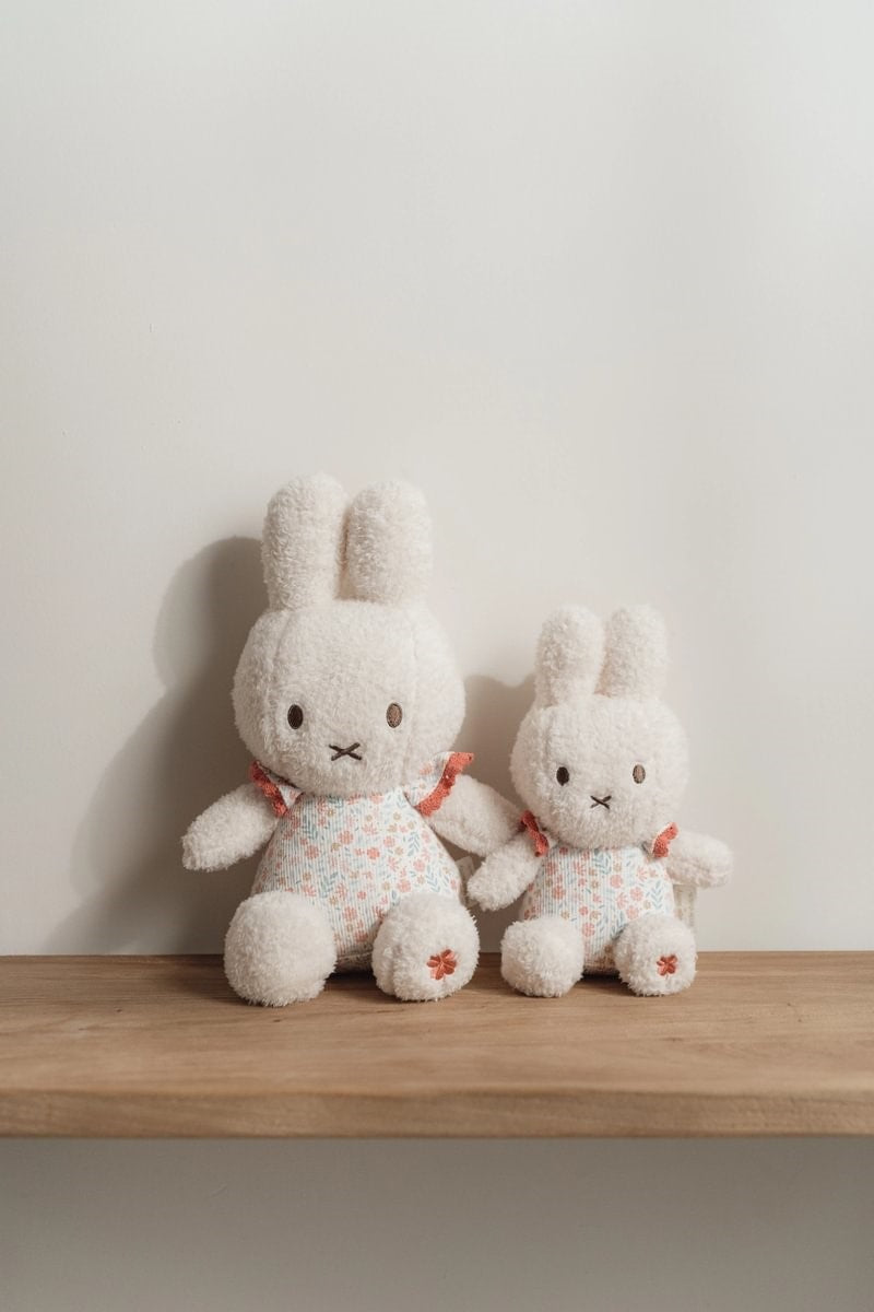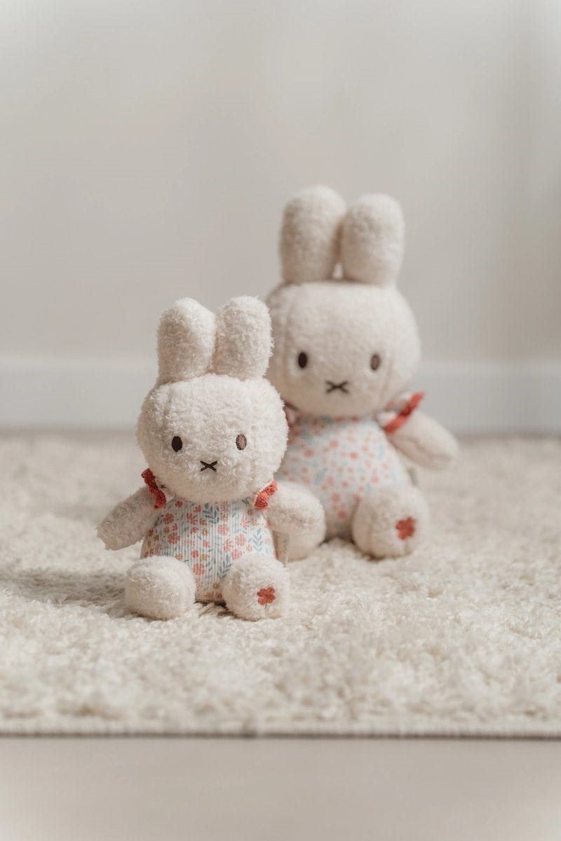 ¿Lista para un abrazo? Esta Miffy está esperando que la abraces y la mimes. Es increíblemente suave y tiene el tamaño perfecto para ir contigo a todas partes. La adorable Miffy está hecha de felpa suave y pana estampada y mide 20 cm de alto. Está vestida con el estampado Lucky Blossom, un diseño de Little Dutch. Un conejito icónico que no puede faltar en ninguna habitación infantil.