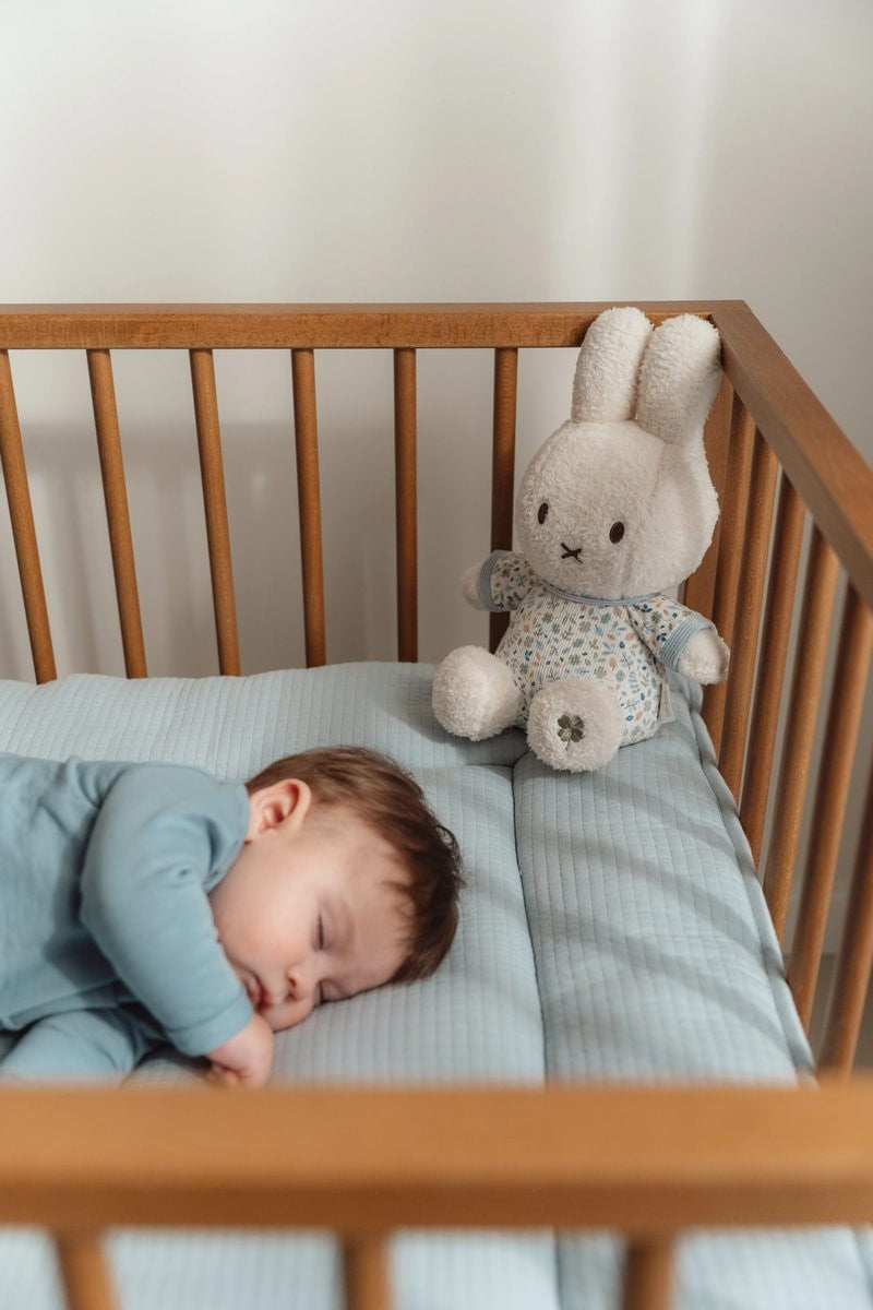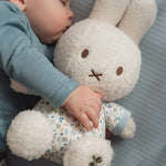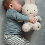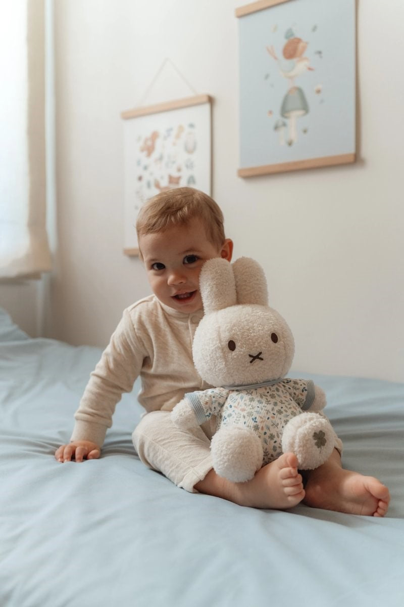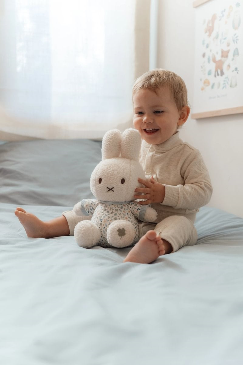 ¡Ven a abrazar a Miffy! Es suave y dulce y siempre está listo para recibir abrazos. Mientras juegas, de paseo o a la hora de dormir, siempre está ahí para ti. Miffy, hecho de suave felpa y pana estampada, mide 30 cm de largo y ahora luce un hermoso conjunto con el estampado Lucky Leaves, diseñado por Little Dutch. El peluche incluye una divertida campana. ¡Un bonito complemento para la habitación del bebé!