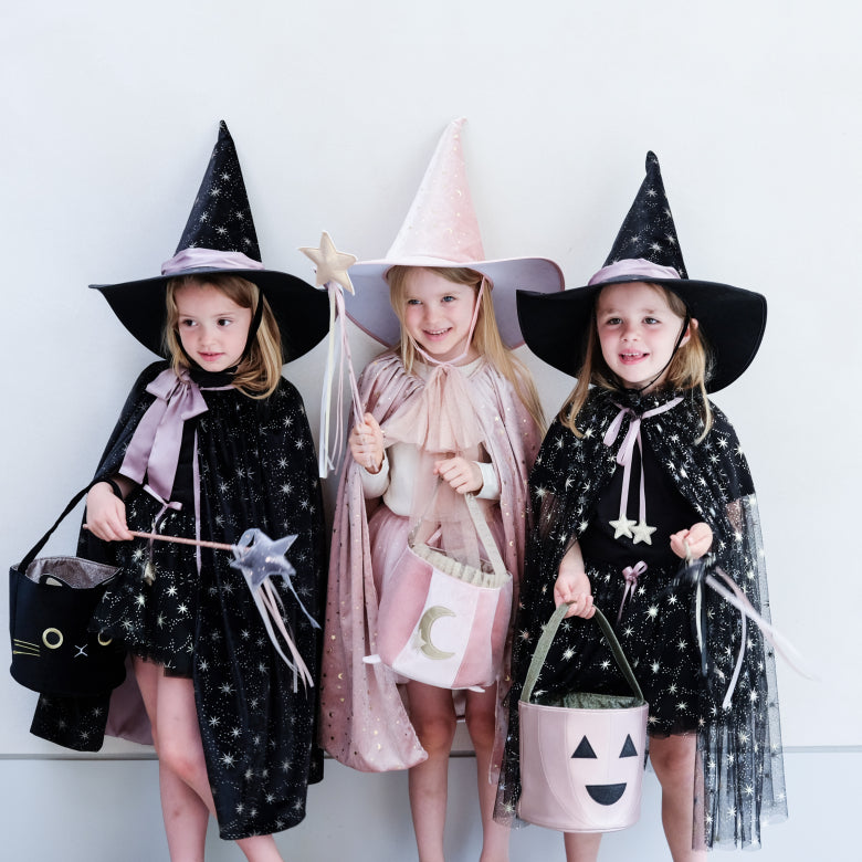 Prepárate para volar y hacer magia con esta preciosa capa de brujita. Hecha de tul y decorada con mucho brillo, no puede ser más ideal.