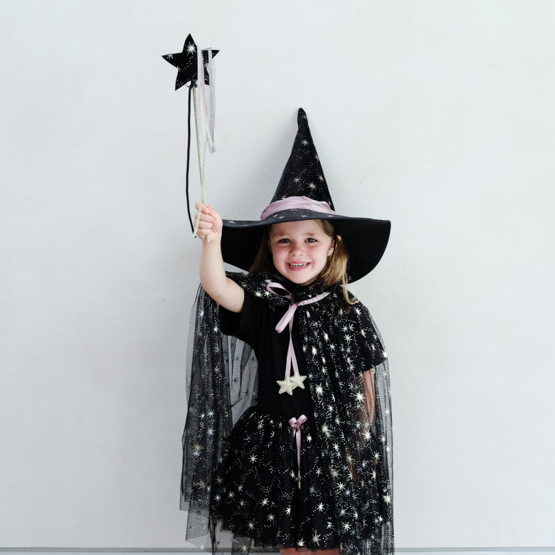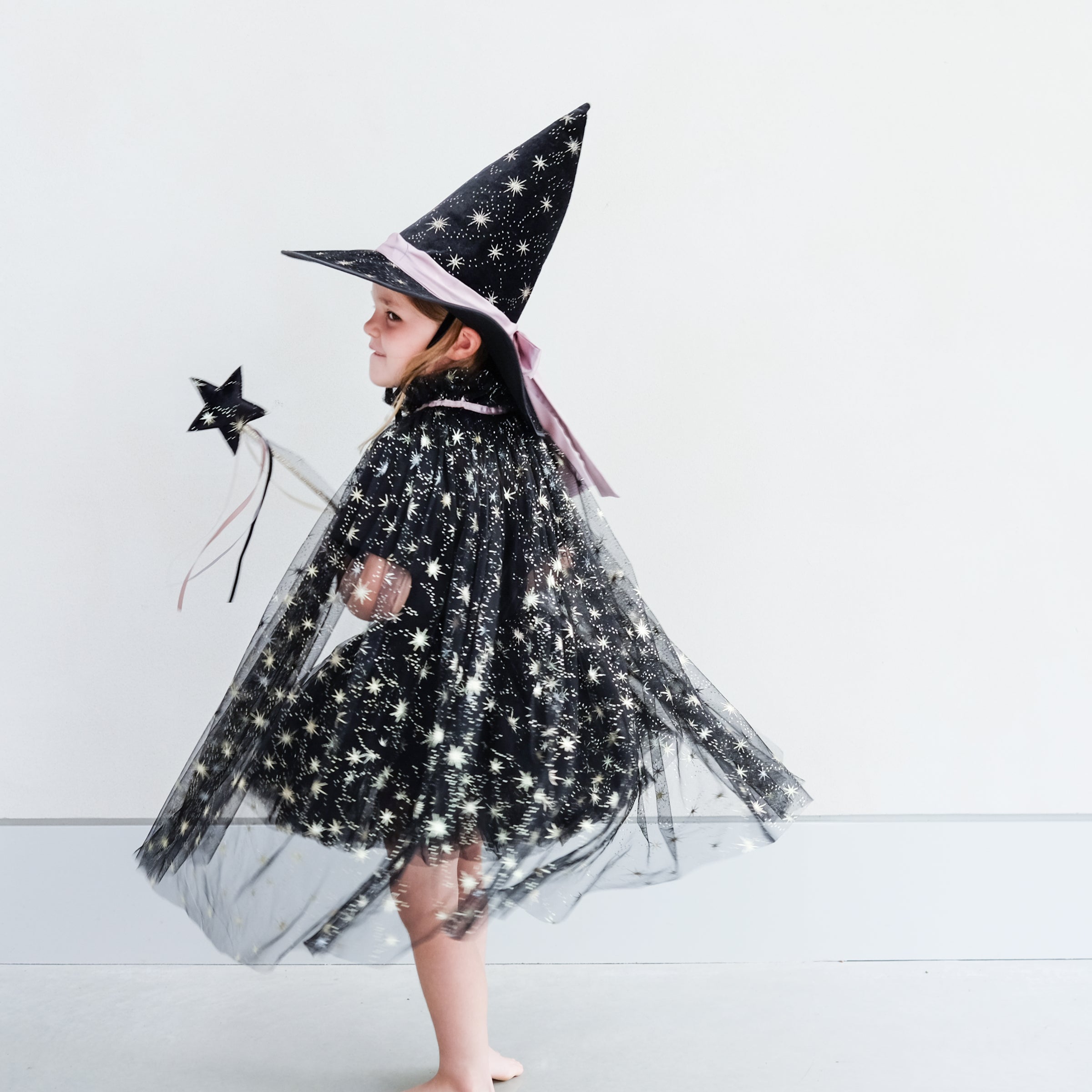 Disfrázate para hacer la mejor magia con este tutú. Hecho de varias capas de tul negro y decorado con mucho brillo, es perfecto para las pequeñas brujitas que quieren ir divinas.