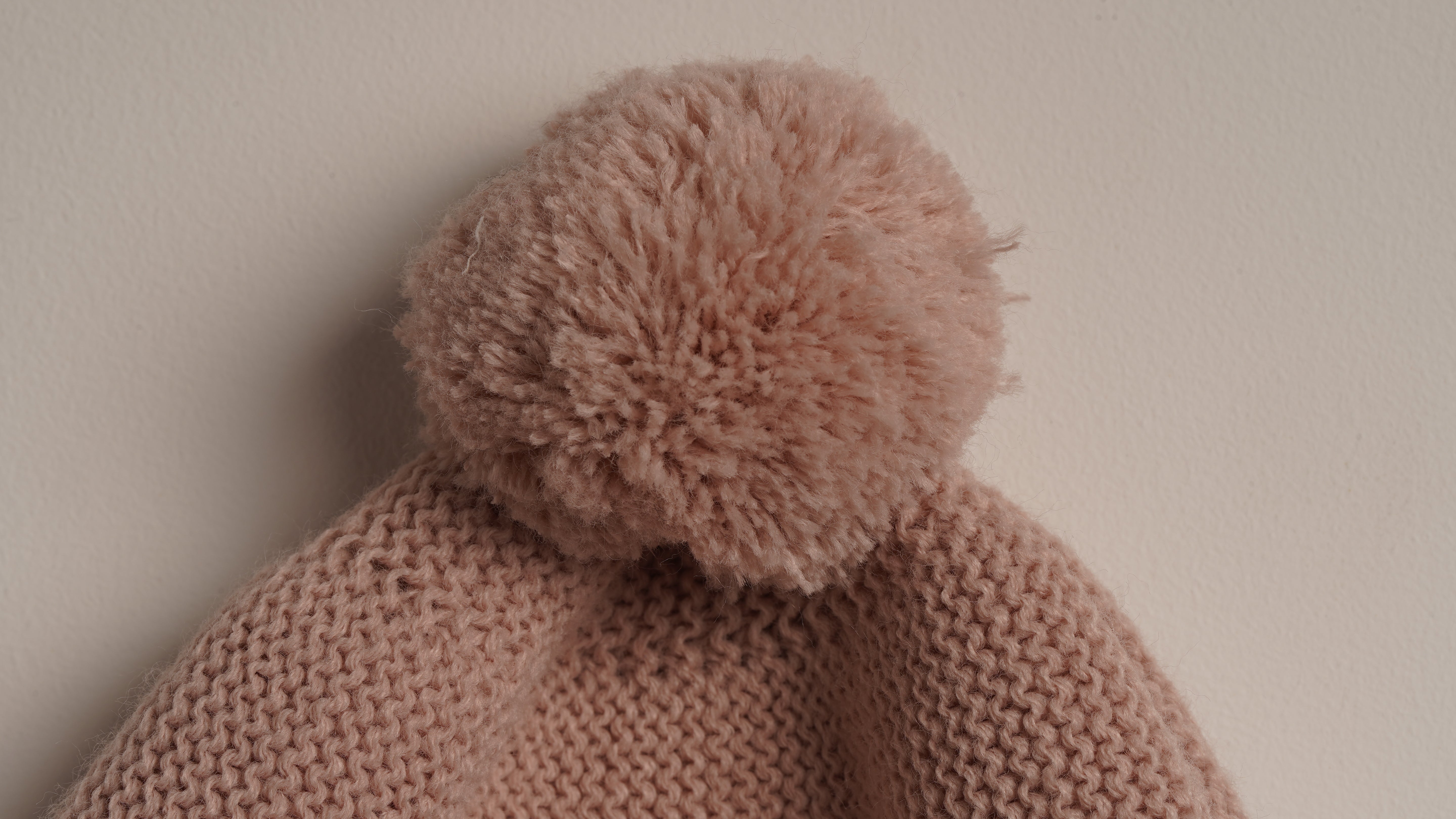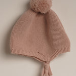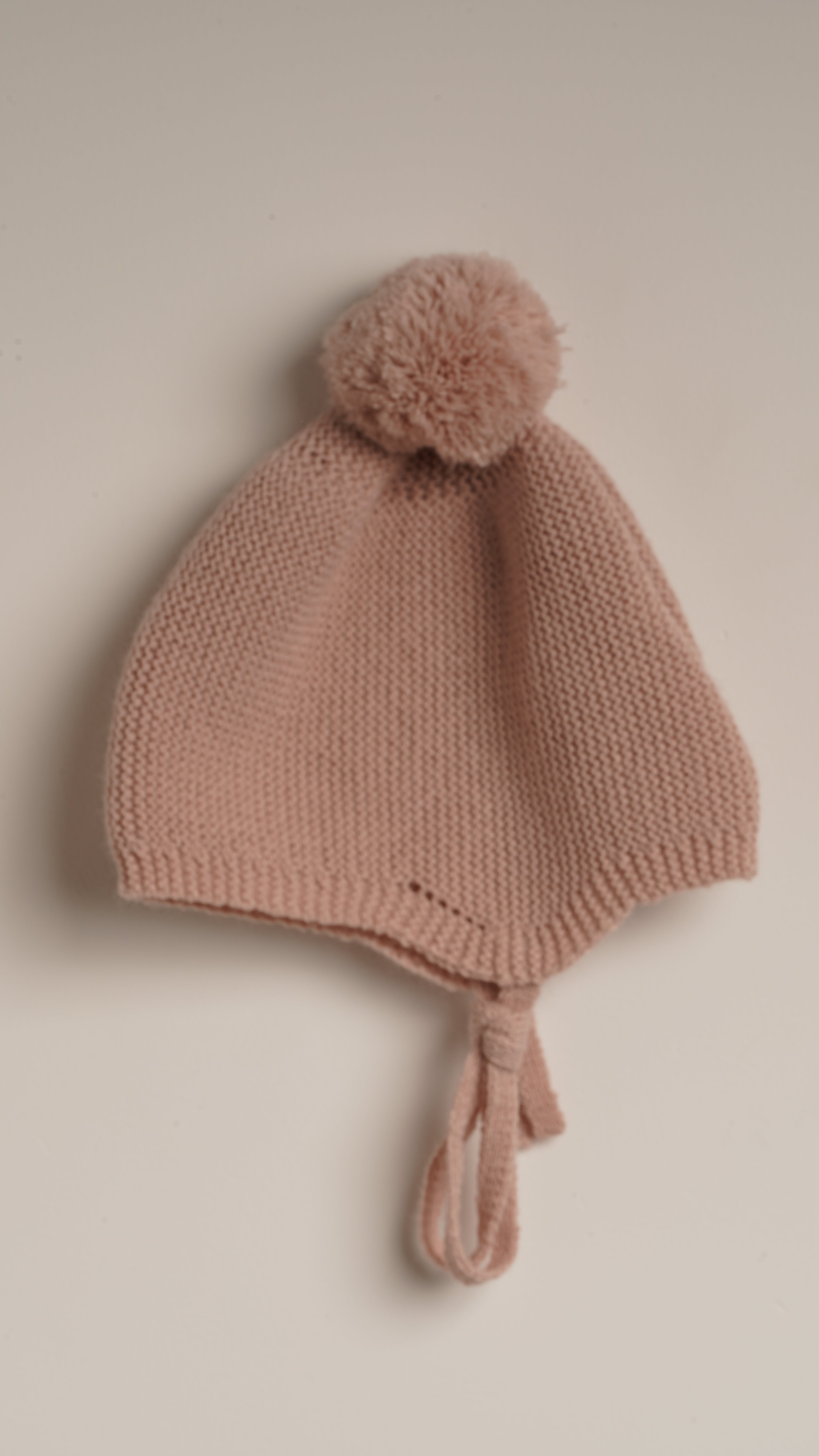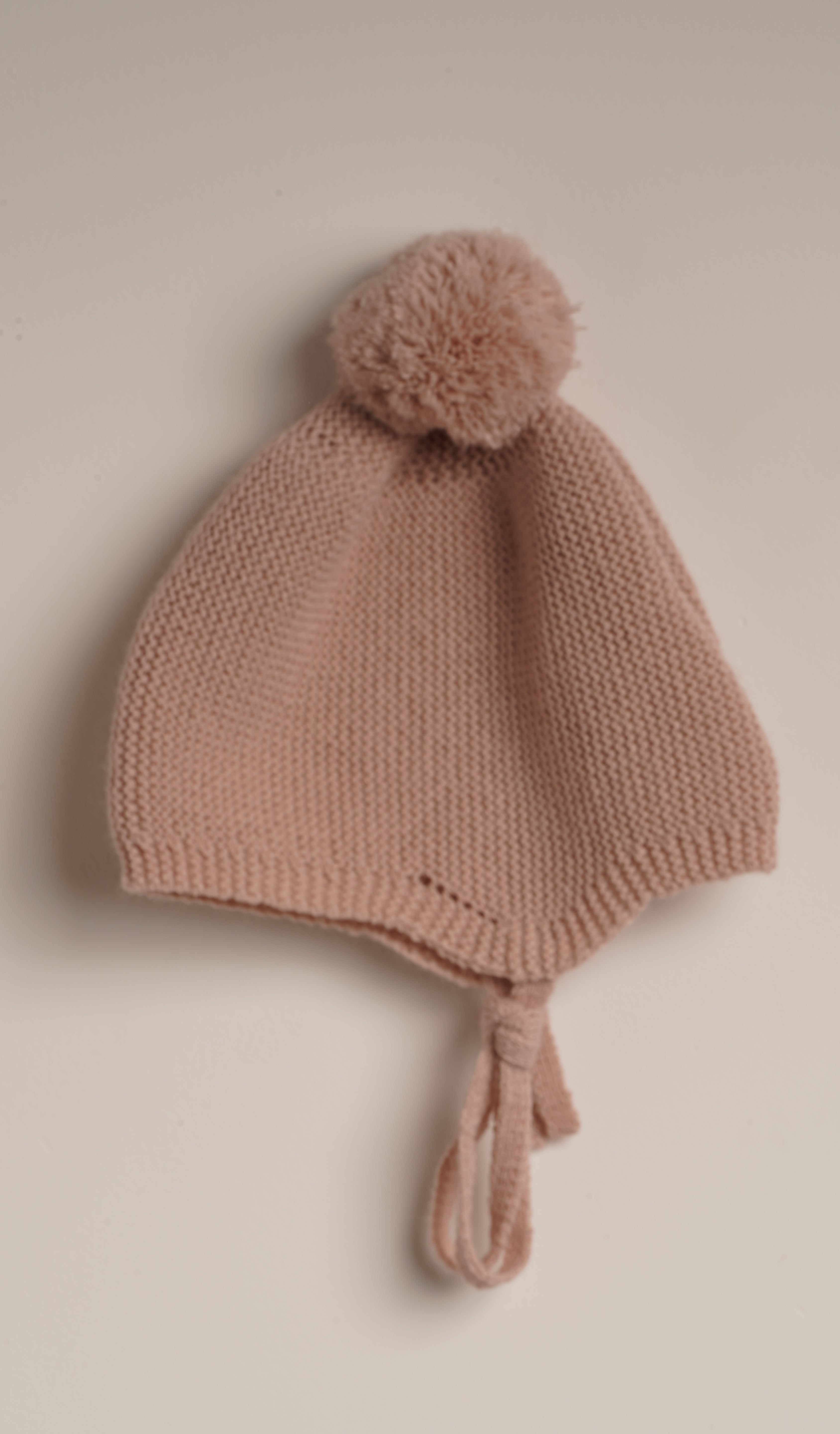 Gorro de punto de invierno color rosa nude con el pompón del mismo color. Combínalo con otros artículos de nuestra tienda online.