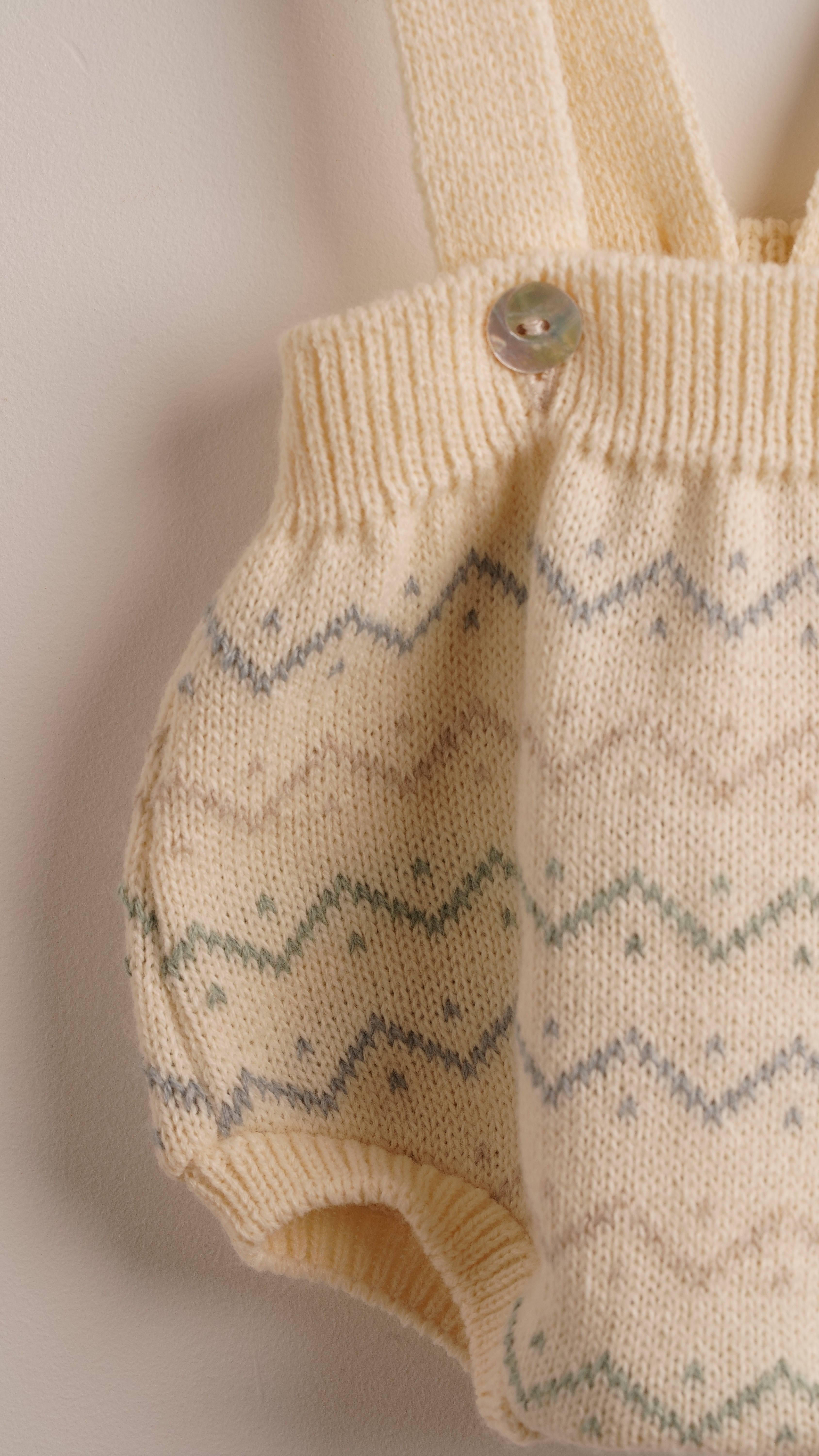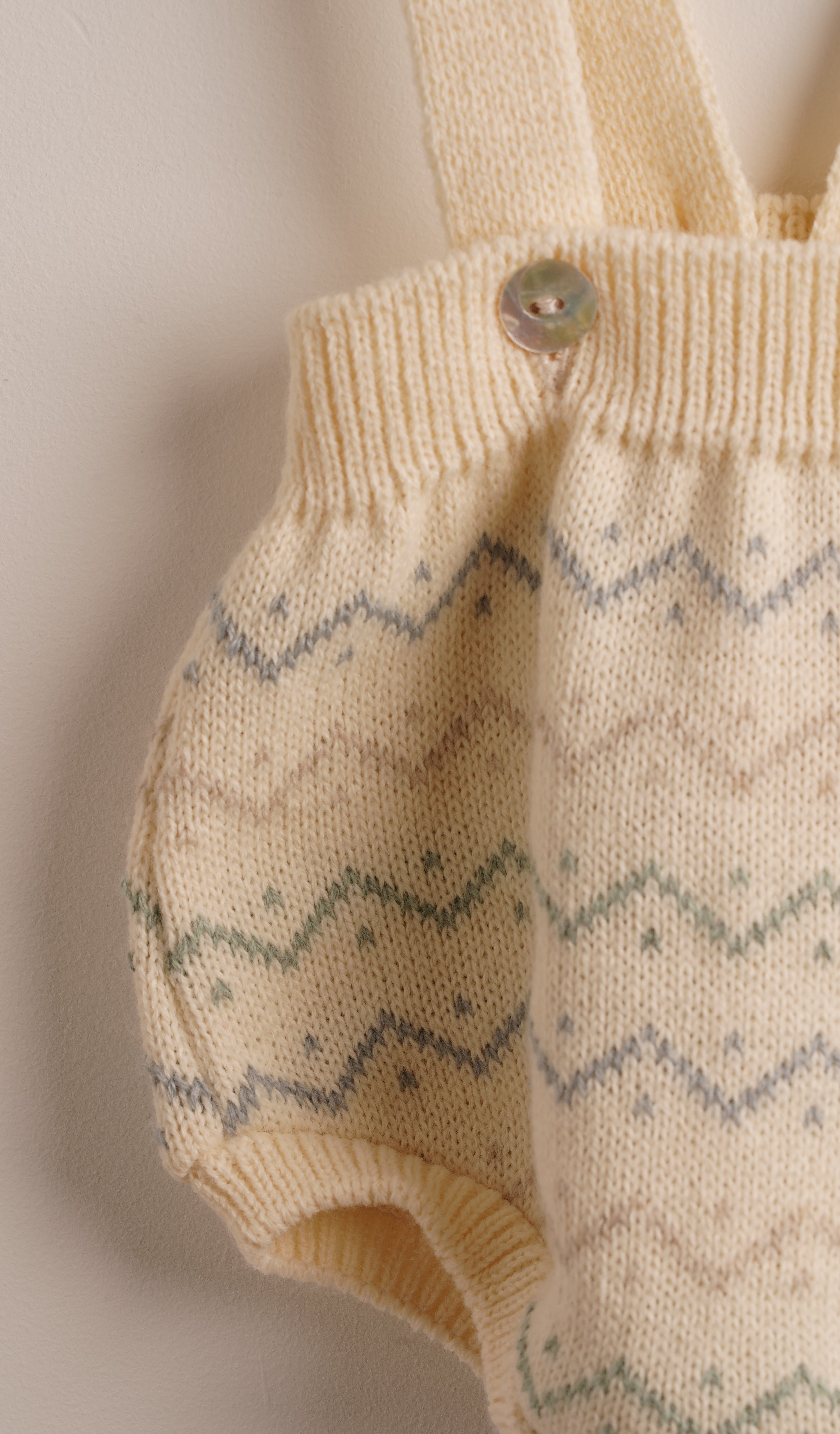 Peto de punto color hueso con greca pastel. Combínalo con nuestra chaqueta hueso greca pastel a juego.