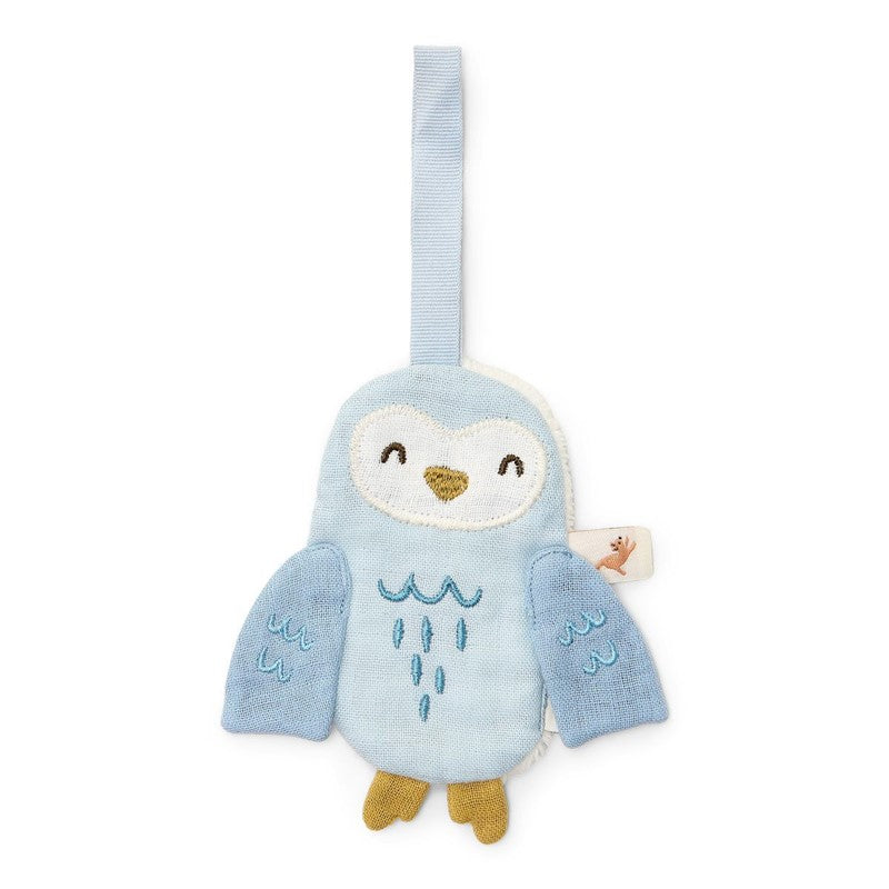 Este divertido buho va a sujetar el chupete de tu bebé, además el peque va a poder jugar con el. La parte delantera hecha de muselina suave y arrugada, absorbe la humedad. La parte trasera está hecha de vellón, lo que la hace súper suave y tierna. Hay un lazo de algodón donde puedes sujetar el chupete.