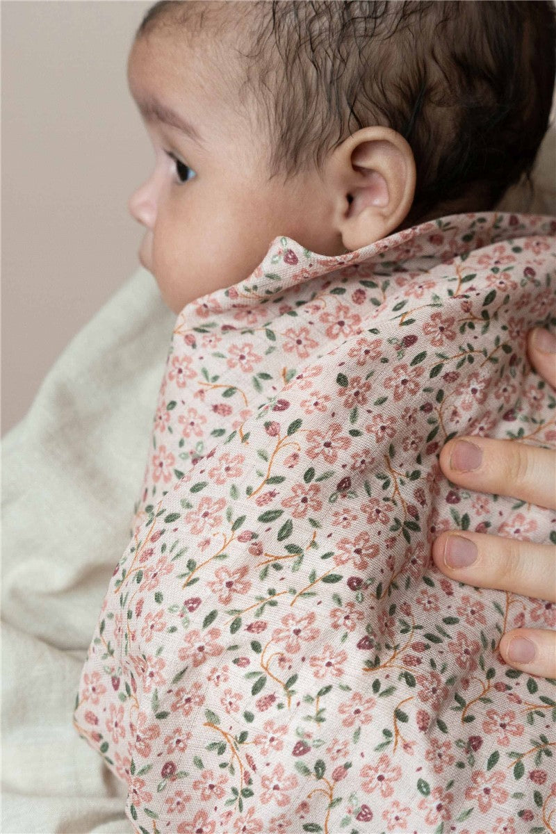 Las muselinas de Little Dutch son auténticos imprescindibles multifuncionales. Confeccionadas en algodón 100% orgánico y certificado Oeko-Tex, estas muselinas son extra suaves al tacto, tienen una alta capacidad de absorción y se secan rápidamente. Ideal para secar a tu bebé después del baño, como cambiador o como toalla para después de alimentarlo. Este set contiene una muselina con el estampado de flores rosa y una muselina lisa de color rosa pastel. Ambas miden 70 x 70 cm.