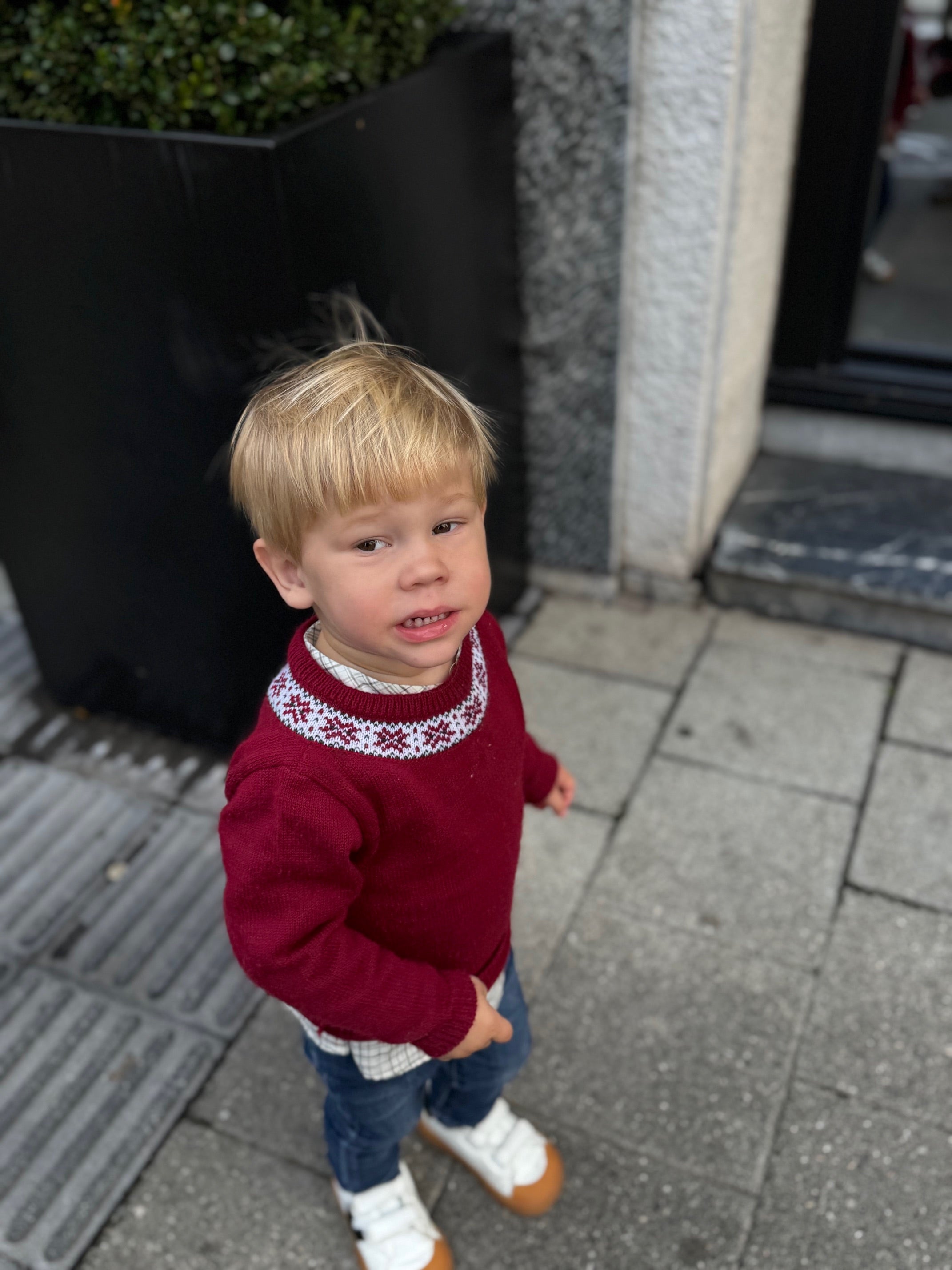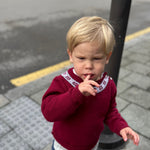 Jersey de color granate con greca y botones nácar. Combínalo con nuestras camisas y pantalones para crear un look ideal.