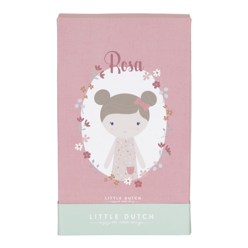 Conoce a la encantadora muñeca Rosa. Esta muñeca de peluche de Little Dutch con un lindo vestido quiere ser abrazada. Rosa puede sentarse y le gusta ir contigo en el carrito de muñecas de madera Little Dutch que encontrarás en nuestra tienda.