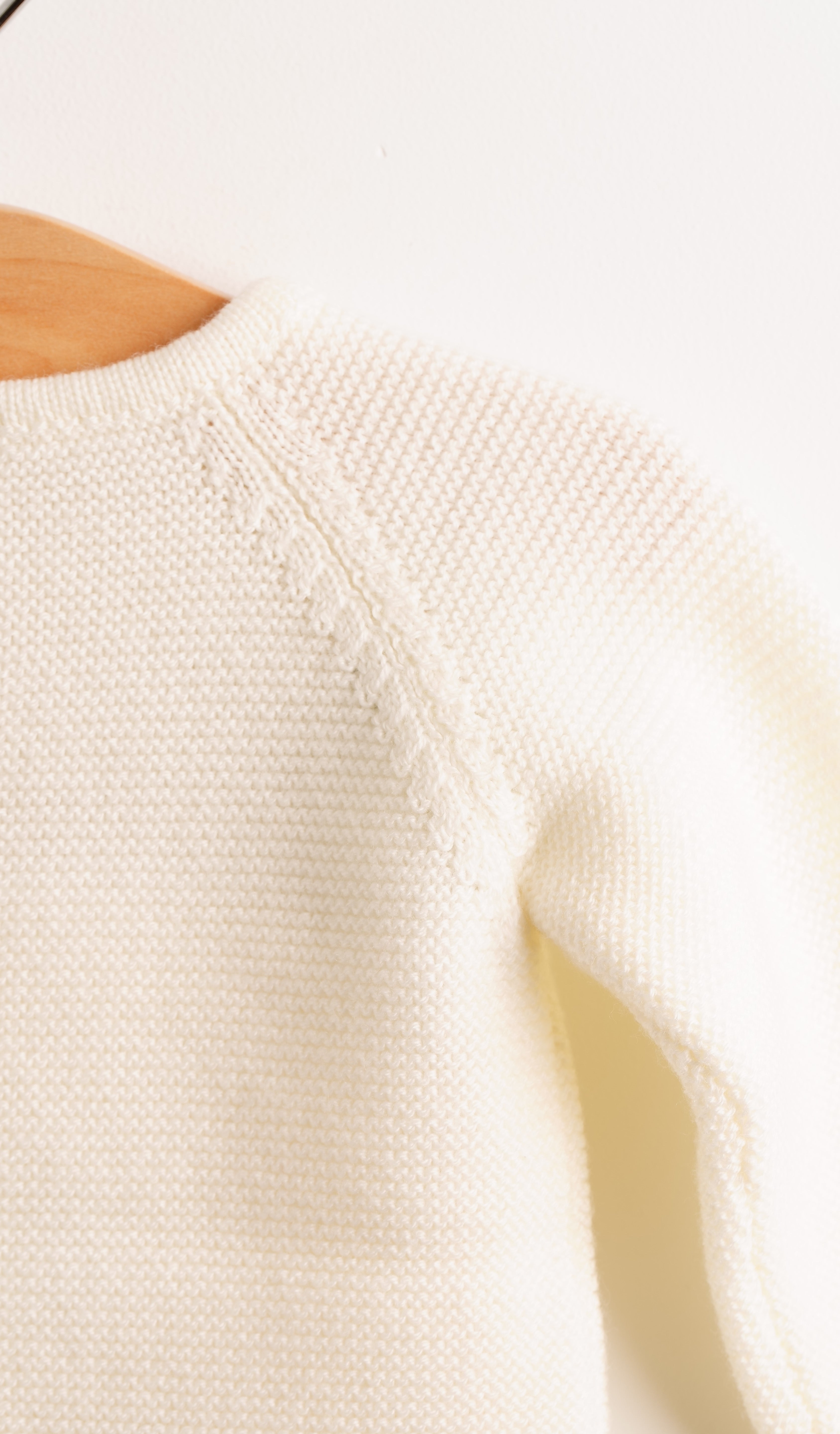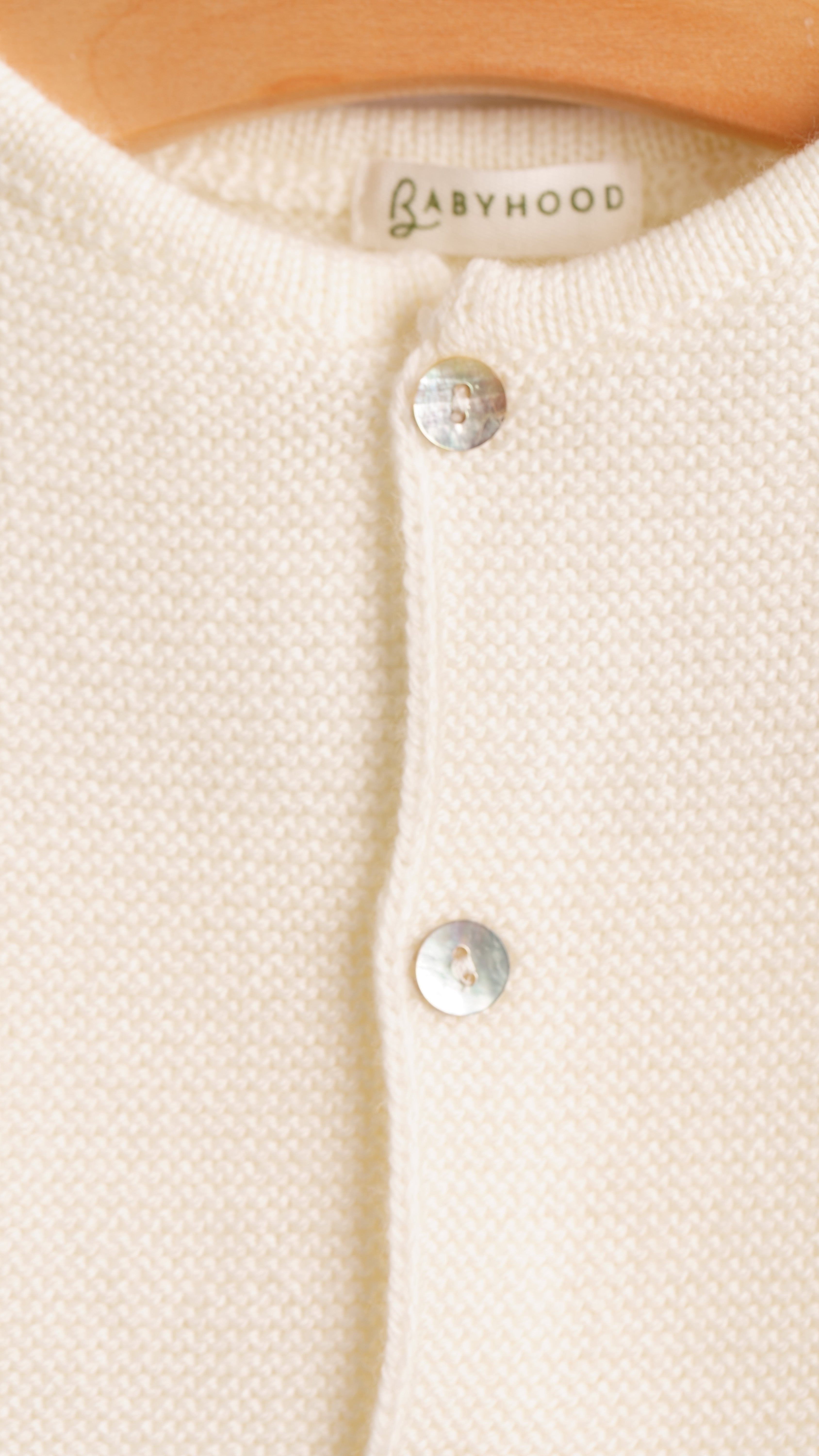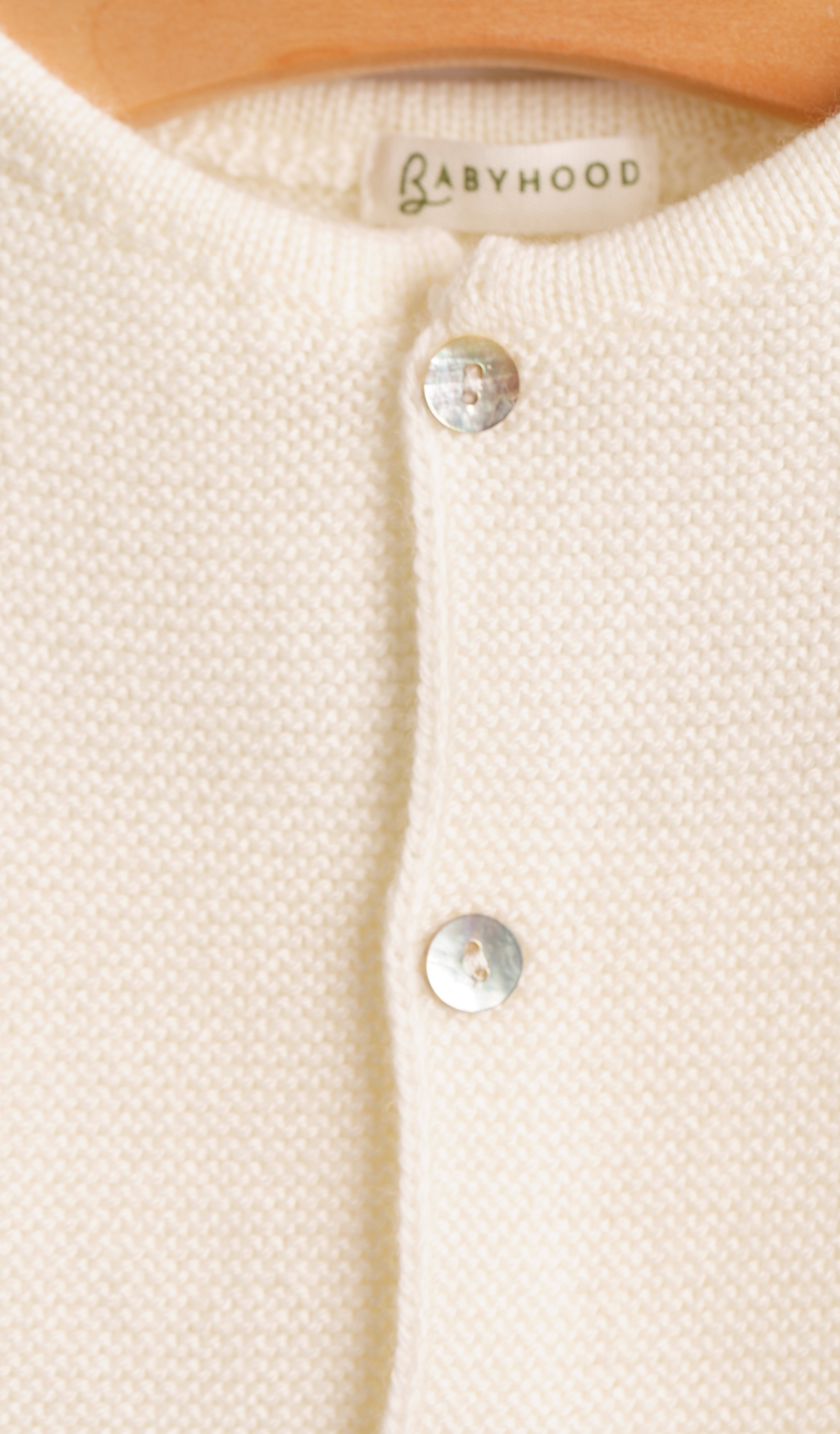 La Chaqueta de Lana Merino Babyhood forma parte de nuestra primera colección cápsula lana merino. Está confeccionada con lana merino premium procedente del norte de Italia y fabricada íntegramente en España, garantizando calidad y proximidad en todo el proceso.