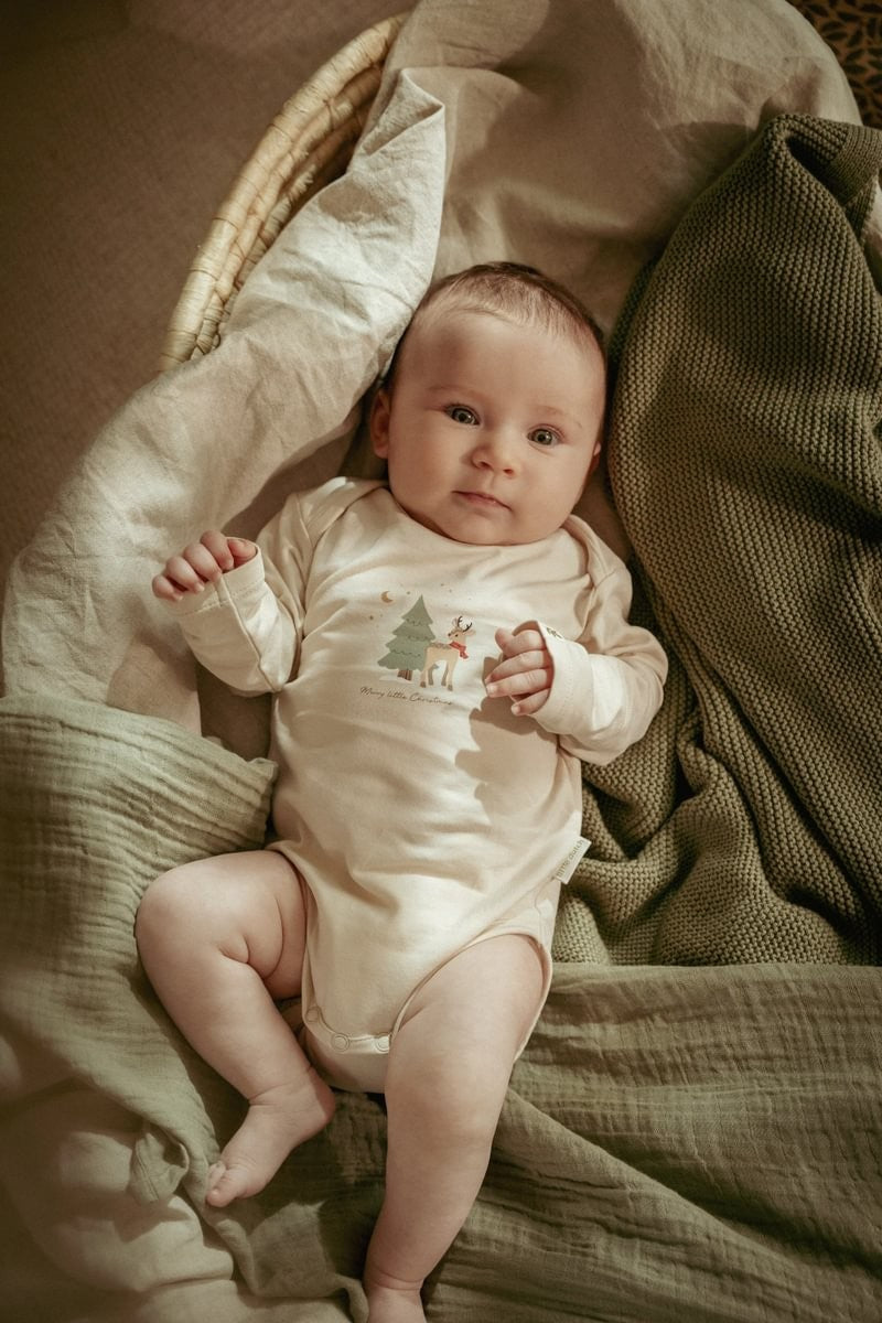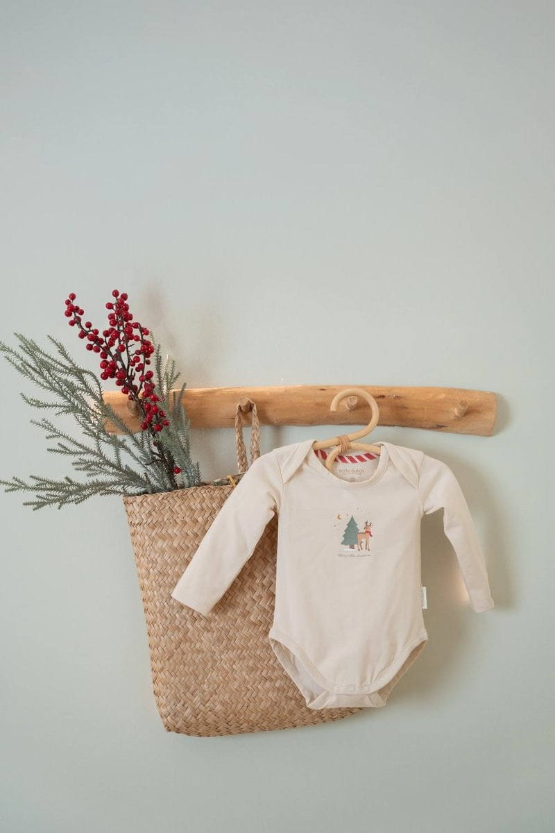 Pack regalo de dos bodys para bebé con la temática de Navidad. Hechos de algodón 100 % orgánico, con el cierre en la entrepierna.