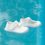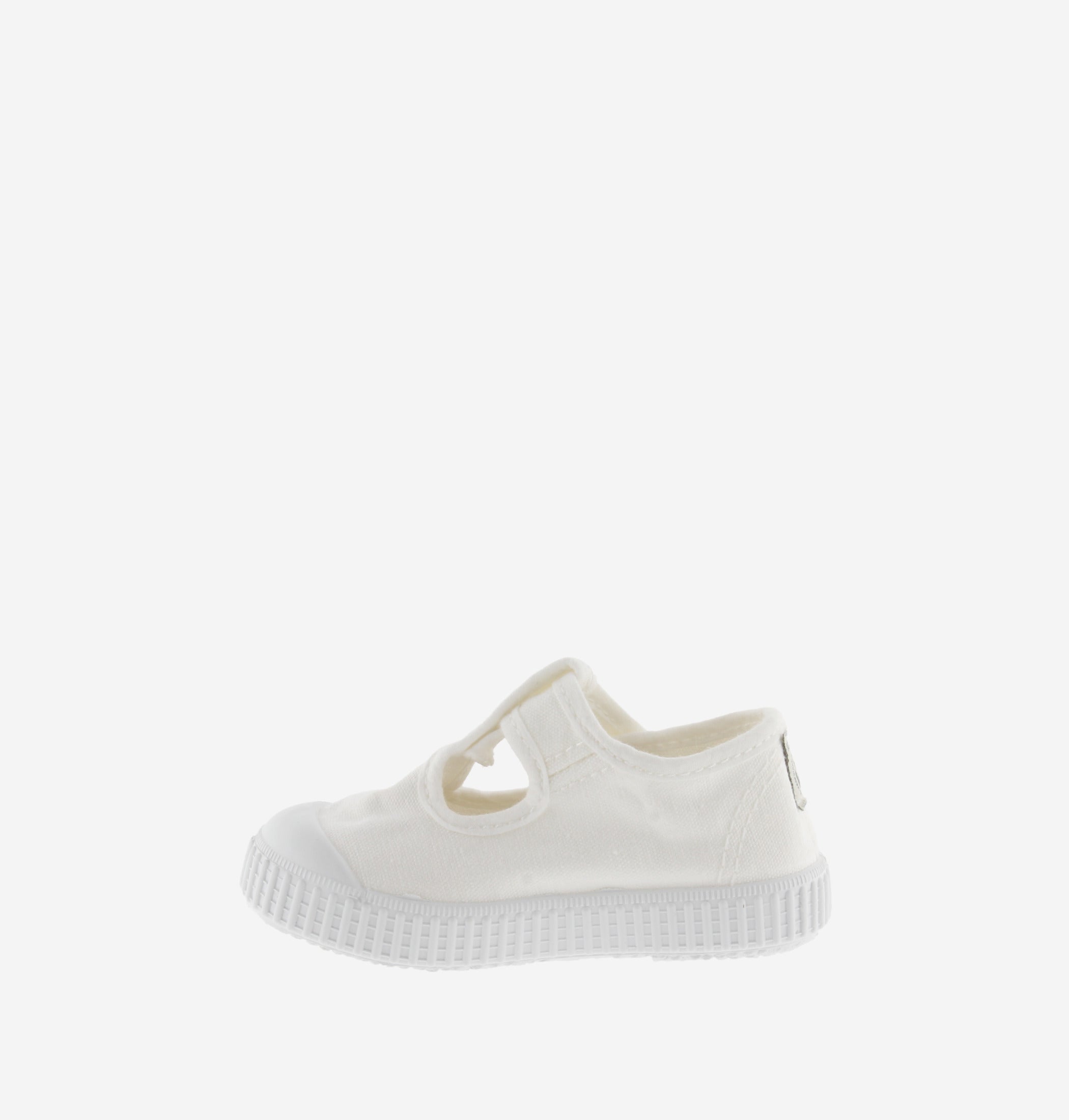 Sandalias de lona de algodón ecológico tintado reciclado DREC (Dyeable Recycled Eco Cotton). Su cierre es mediante una tira adherente, que facilita el calce y fomenta su autonomía. Suela de TR con refuerzo en la puntera, para una mayor resistencia y durabilidad. Modelo sostenible Dear World.