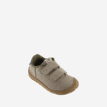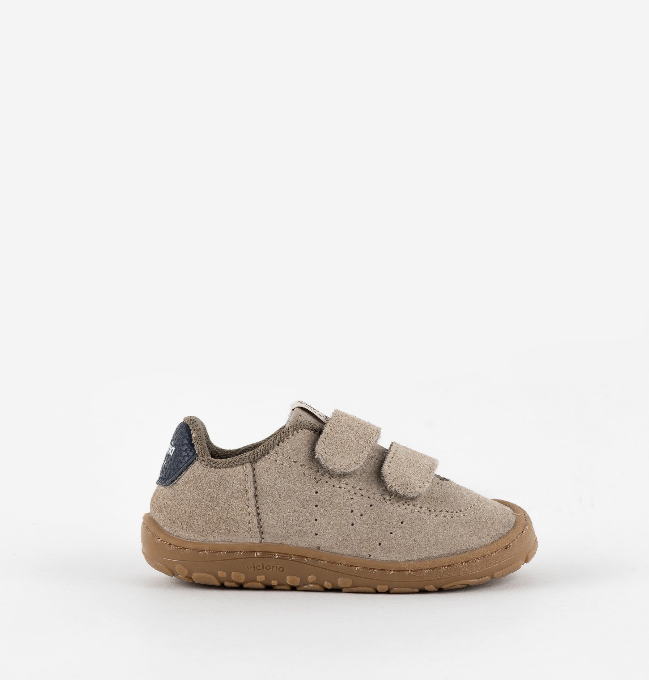 Zapatillas barefoot para niños fabricadas en España en una combinación de piel de la mejor calidad, certificada LWG (Leather Working Group), que garantiza un proceso de curtición responsable, con un uso eficiente de agua, energía y una gestión de residuos sostenible, y piezas sintéticas.