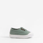 Zapatilla de lona de algodón ecológico tintado reciclado DREC (Dyeable Recycled Eco Cotton). Presentan un elástico central en el empeine, que facilita el calce y aporta sujección. Suela de TR con refuerzo en la puntera, para una mayor resistencia y durabilidad. Modelo sostenible Dear World.