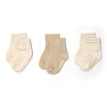 Este pack incluye 3 pares de calcetines: uno color beige clarito con el precioso dibujo de la oca, segundo color beige con la terminación canalé y tercero color beige claro y con rayas en un tono más oscuro.