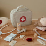 Los pacientes se sentirán rápidamente mucho mejor si esta bolsa de médico está a mano, lista para tomar su temperatura, controlar sus latidos cardíacos y su presión arterial y para curar sus heridas. ¡Este juego de rol enseña a los niños que la visita al médico no es para nada aterradora!