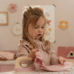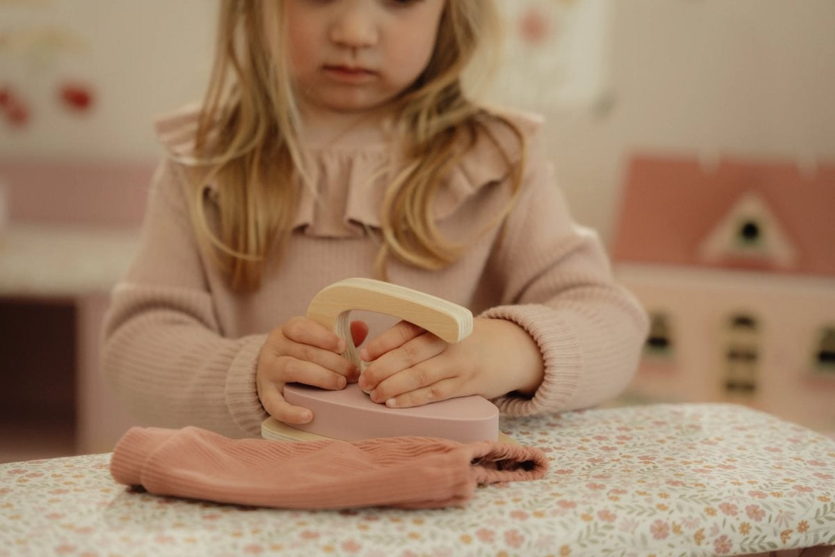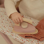 ¡Plancha como los mayores! Con esta preciosa tabla de planchar de madera y su plancha a juego, los peques podrán planchar con cuidado la ropa de sus muñecas o peluches. La tabla es plegable, lo que facilita su almacenamiento. ¡Un complemento perfecto para juegos de rol y una forma fantástica de descubrir las tareas del hogar jugando!