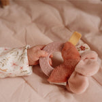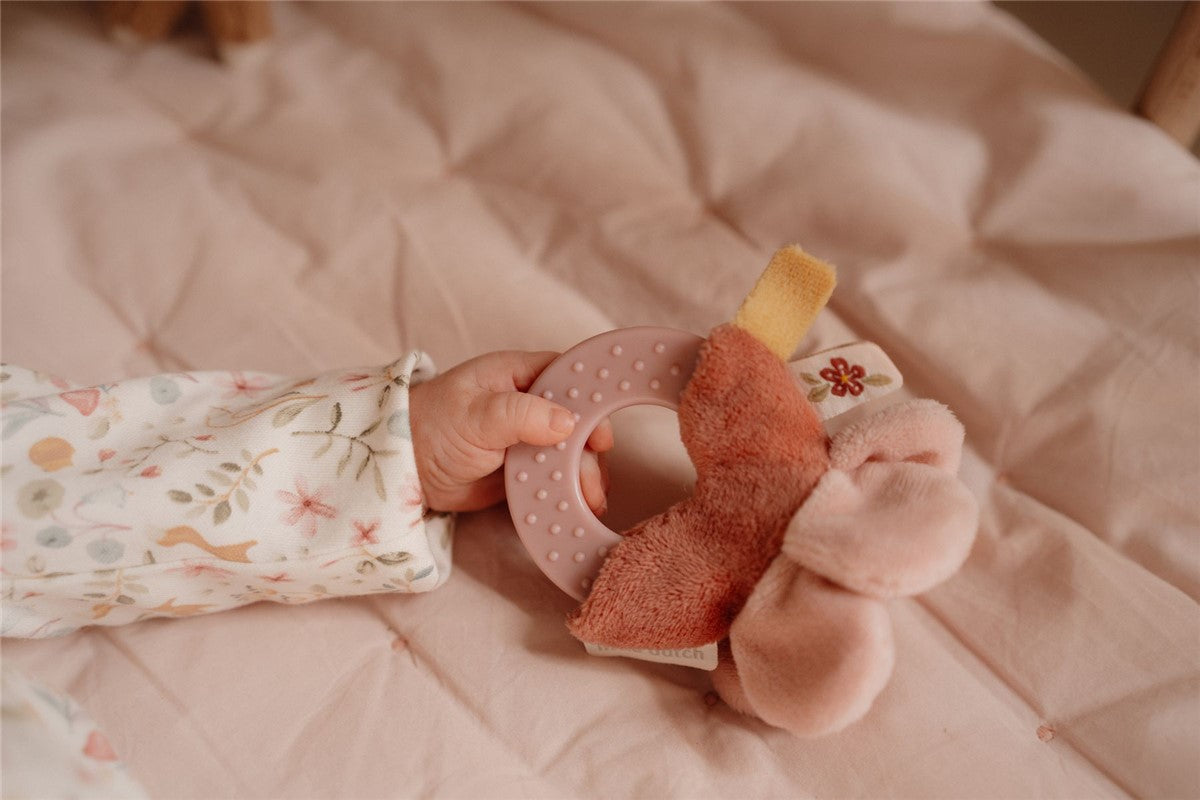 Este set también incluye un mordedor para brindar comodidad cuando comiencen a salir los primeros dientes. Y la linda flor del mordedor estimula la coordinación mano-ojo y la curiosidad en los bebés. Los tres productos están empaquetados en una hermosa caja de regalo.