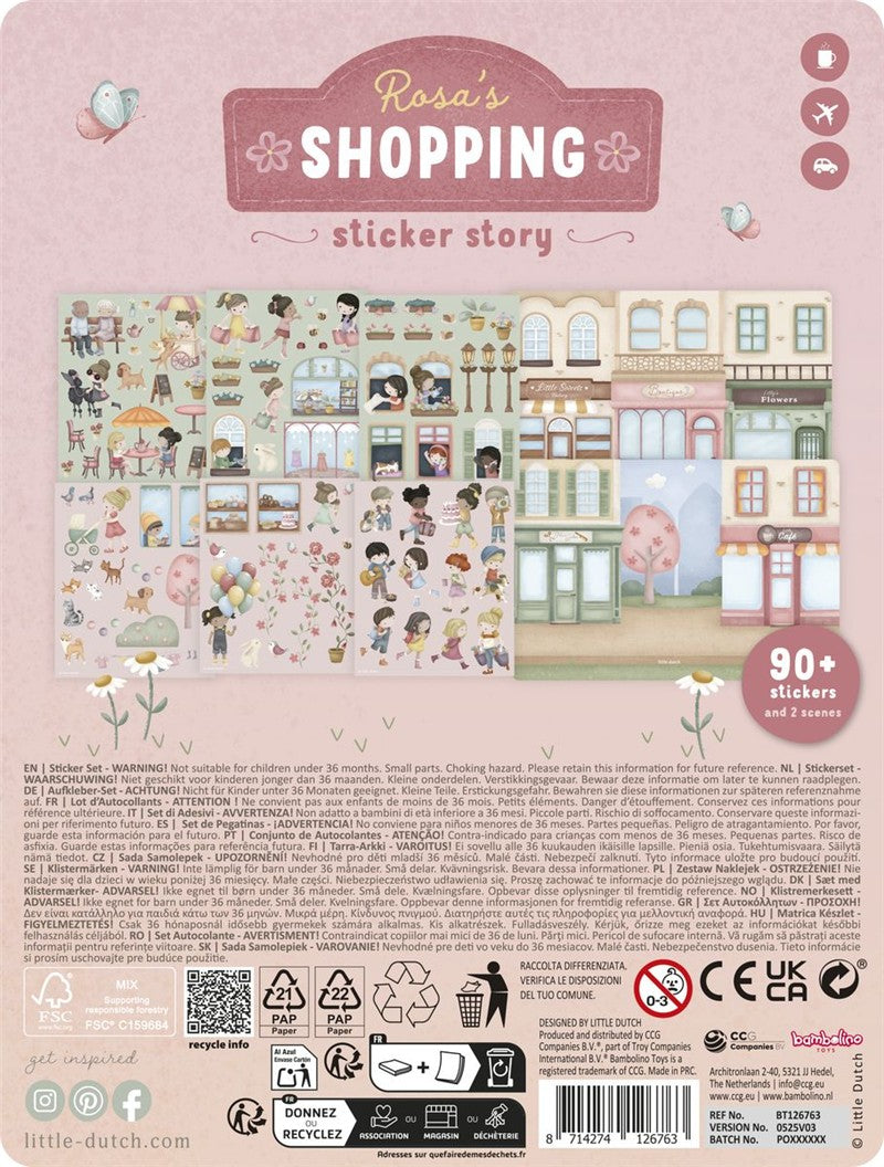 Vete de compras con Rosa y sus amigos!! Este precioso libro contiene más de 100 pegatinas a doble cara impresas y decoradas con la temática de compras. Los niños se van a entretener un montón creando historias y pegando pegatinas.