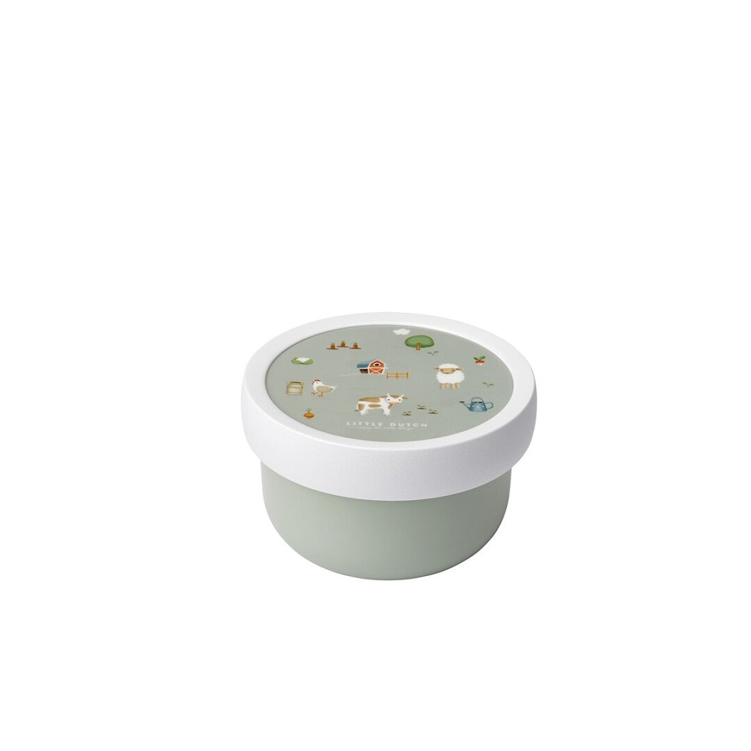 100% a prueba de fugas. Fácil uso para niños. Válido para 1 o dos piezas de fruta, viene con un pequeño tenedor. Se puede usar en el microondas, sin tapa.Capacidad 300 ml.