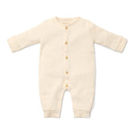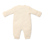 La colección Pequeña Oca reune prendas y accesorios para bebé diseñados con mucho amor, en tejidos suaves y naturales que cuidan la piel de los más pequeños. Este pelele en color crema está hecho de algodón orgánico, tiene cierre en la parte delantera con botones de efecto madera y botones de presión en la entrepierna para facilitar el cambio.