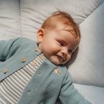Pijama para bebés, modelo cruzado con botones de presión. Tela muy suave y agradable para la piel delicada de bebés. Combínalo con el gorrito y los calcetines a juego.