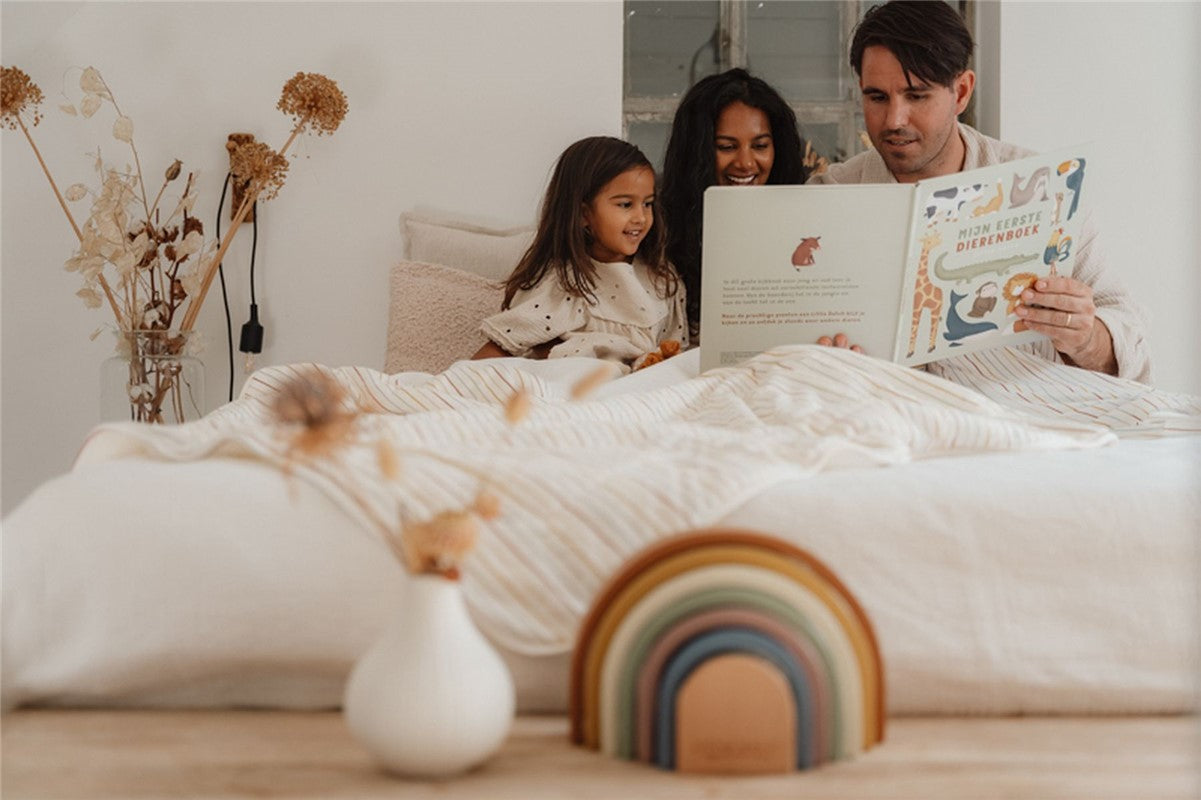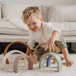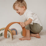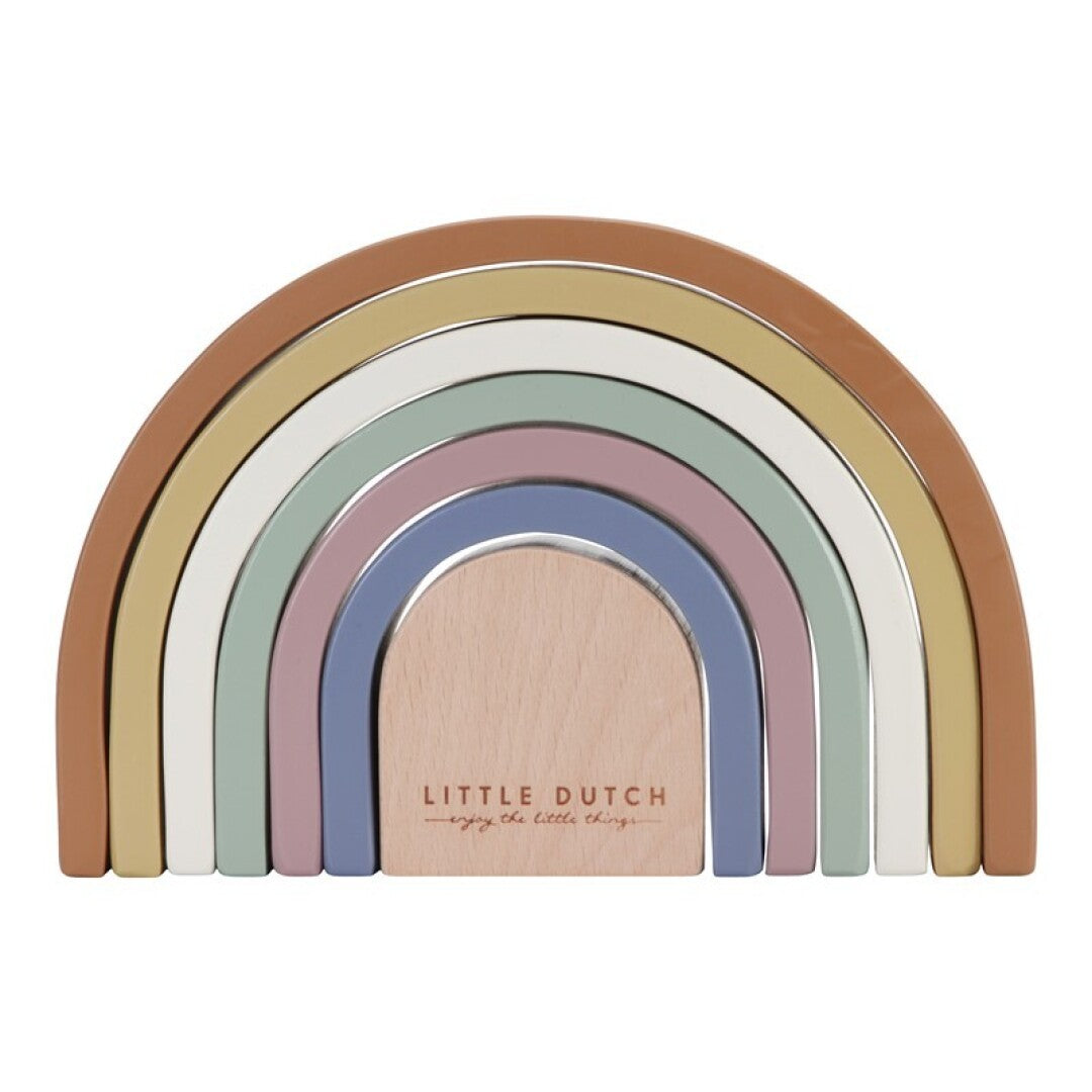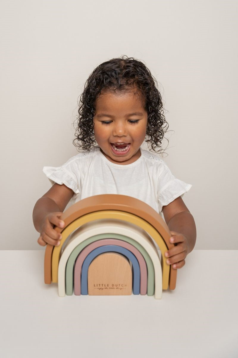 El arco iris de madera de LIttle Dutch es una torre de madera con forma de hermoso arco iris. El arco iris se ve muy bien en la habitación de un niño y es divertido jugar con él. Consta de 7 arcos que encajan entre sí. Su hijo puede usar estas formas semicirculares para jugar y aprender y para hacer todo tipo de creaciones utilizando su imaginación. Los arcos también se pueden utilizar como un túnel de tren, una casa para muñecas o montañas para coches pequeños.