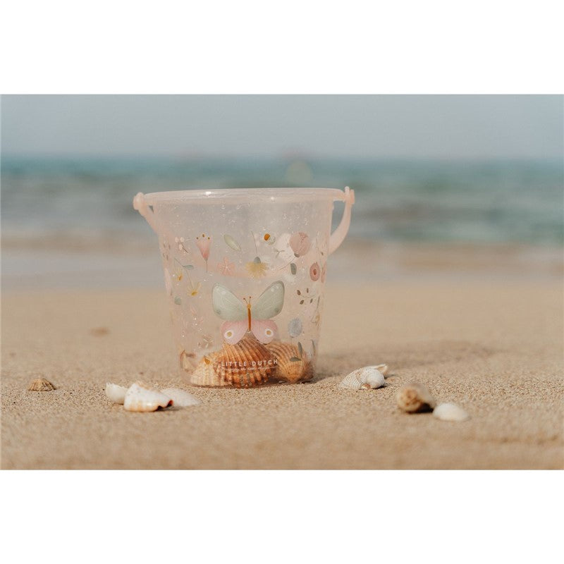 ¡Vamos a recoger conchas  y piedritas a la playa! Trae tu cubo de playa y busca en la orilla las conchas más bonitas. Con las preciosas ilustraciones de flores y mariposas, este cubo de playa es un juguete sencillo pero versátil para un gran día de diversión en la playa.