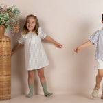 Nuestra colección Raya Azul está pensada para vestir a hermanos conjuntados con un estilo clásico, fresco y atemporal.