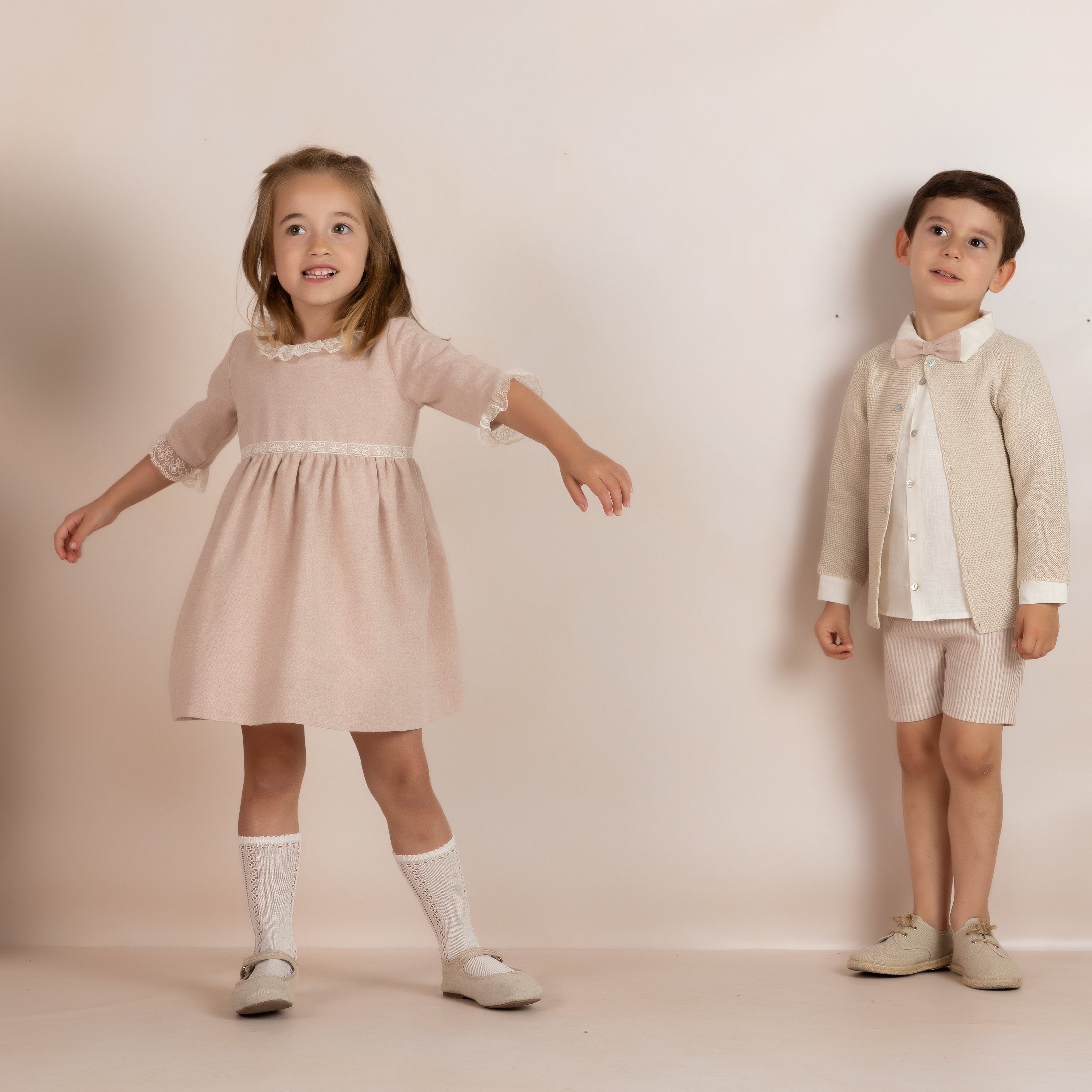 Este vestido forma parte de una colección para hermanos conjuntados, ideal para crear looks coordinados. La colección incluye bermuda y peto a juego para niño.