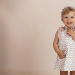 Destaca por sus tirantes anchos con lazo fijo en color rosa empolvado, un detalle muy especial que aporta encanto y personalidad a la prenda. Su corte ligeramente evasé garantiza comodidad y libertad de movimiento, perfecto para jugar, pasear o disfrutar de una ocasión especial.